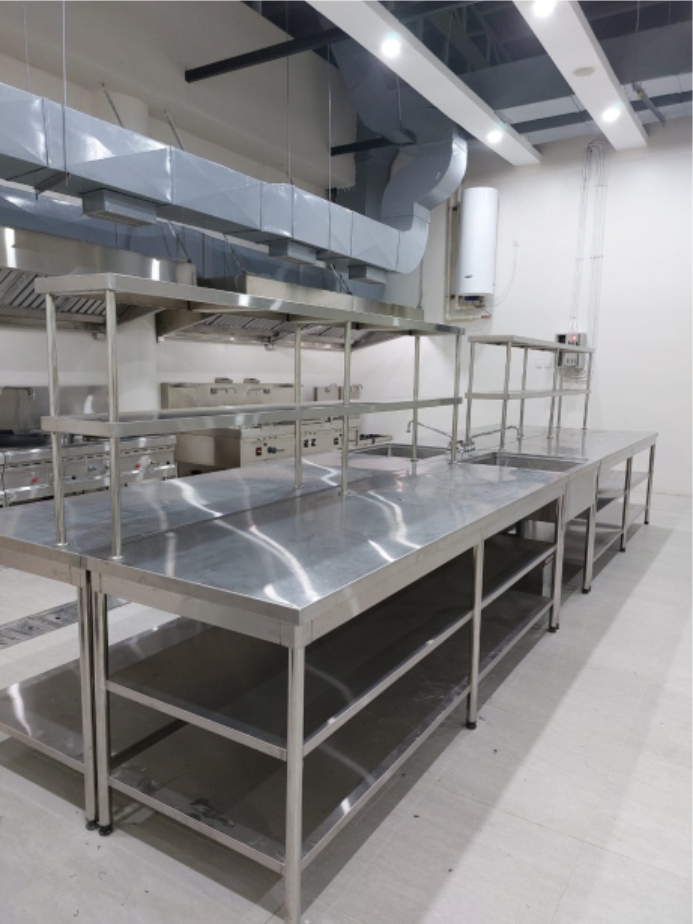 Pembuatan berbagai peralatan stainless steel sesuai kebutuhan ruang dan desain, mulai dari meja kerja, sink, rak, kabinet, hingga perlengkapan dapur lainnya.